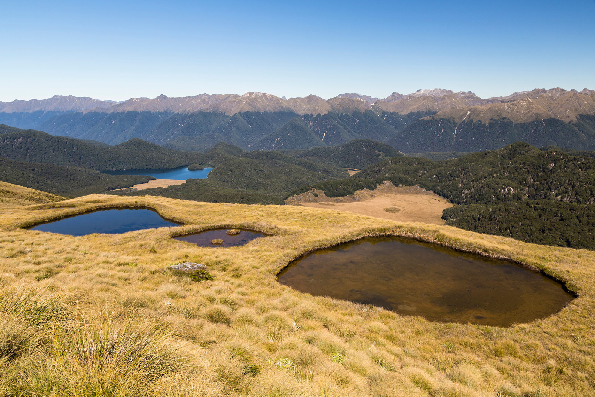 Tarns, tops, outstanding views and an easy scramble onto an accessible Fiordland summit make this an appealing day tramp.