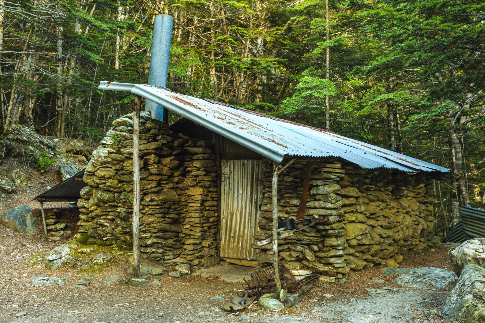 Accessible near Queenstown is this rustic yesteryear gold mining hut, built from schist and iron during the 1930s by local prospector Sam Summers. Overnight use of the hut is no longer permitted, but it can still be visited as part of an enjoyable day trip around the Mt Crichton Loop.