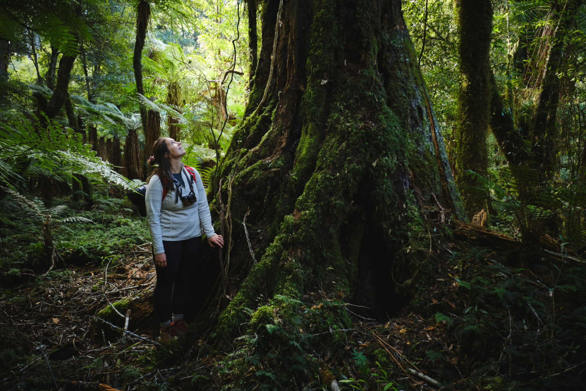 The wide, well-maintained, path allows walkers to float through the ancient forest, head tilted at 45-degrees to take in the full height of the enormous kahikatea, tōtara, matai and rimu.