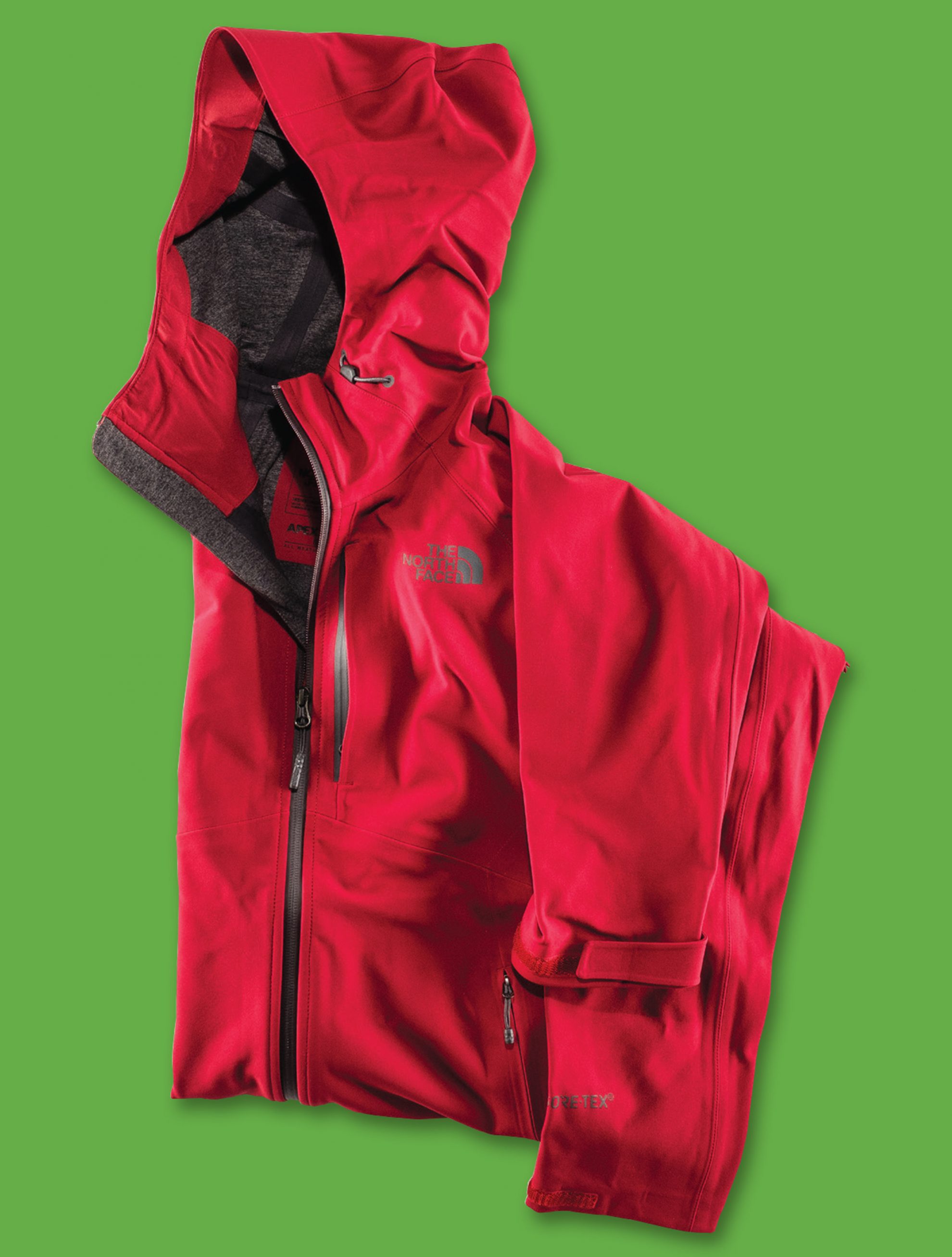 Gore-Tex fabric combines with a stretch-woven exterior for a waterproof and breathable softshell. Active fit, adjustable hood, waterproof front zipper, covered hand and chest pockets, pit-zip venting, Velcro adjustable cuffs and cinch-cord at hem. 680g (m); 465g (w). www.thenorthface.co.nz