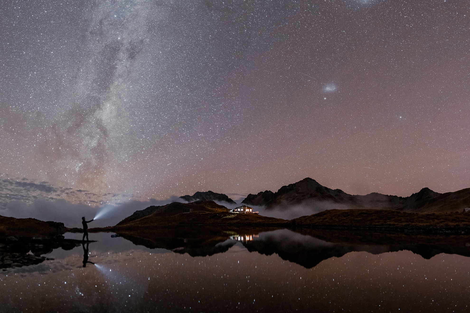 Dylan took this on the shore of Lake Angelus in Nelson Lakes National Park and it shows Angelus Hut in creeping cloud. “The stars come out to play on a cloudless night in Nelson Lakes National Park. With a lack of wind and a candle in the window of Angelus Hut, getting out to enjoy the stars was a necessity,” Dylan said.