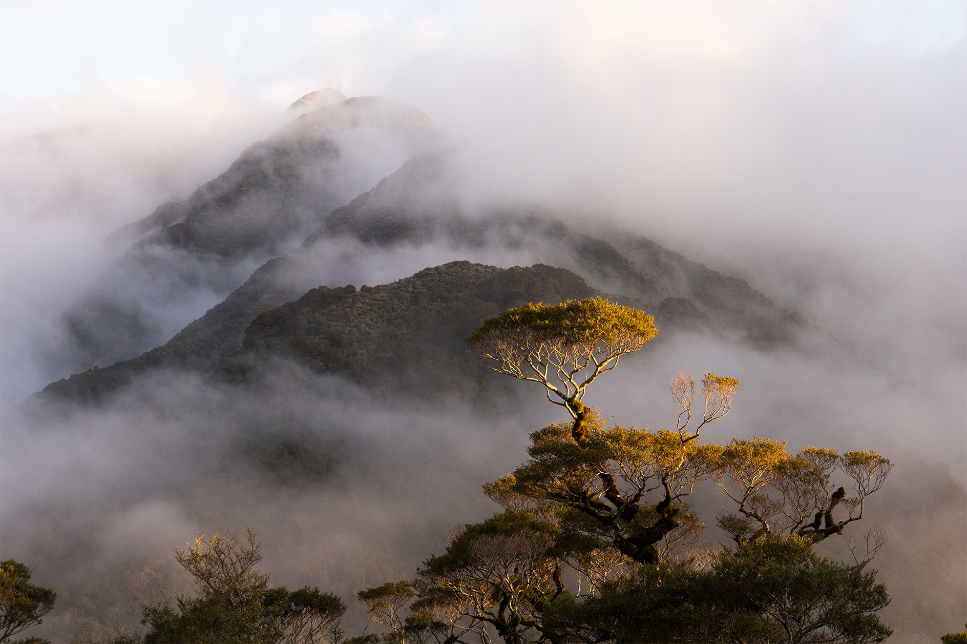 Shaun Barnett: It’s not often an image of flora wins out over a fauna shot, but this serene image showing the stunted beech tree caught in warm light, and framed by mist, was captivating.