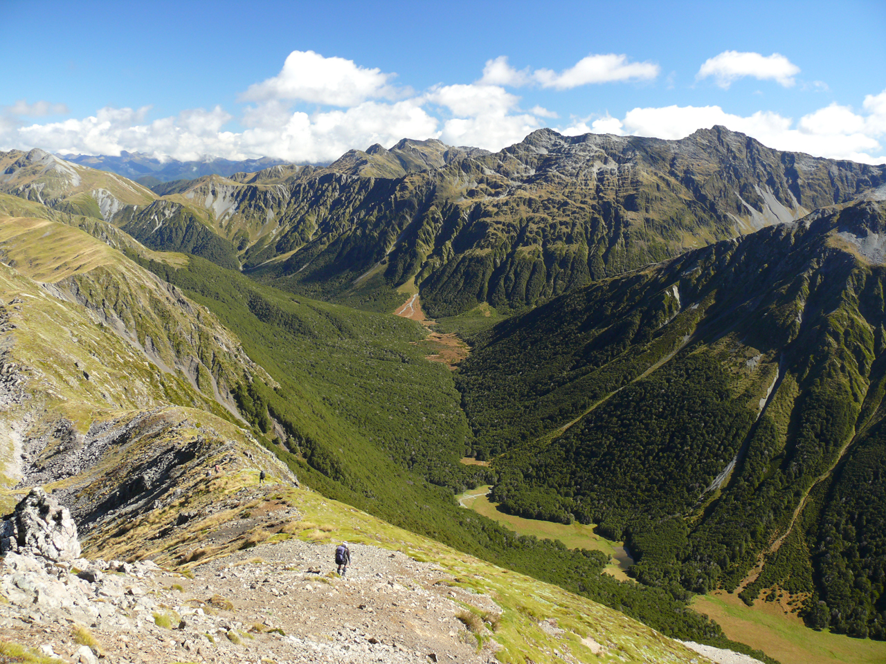 The track leads through open beech forest, where kaka and kea are often heard, and on the tops it may even be possible to see the odd rock wren bobbing on the boulders, particularly near Iron Hill.