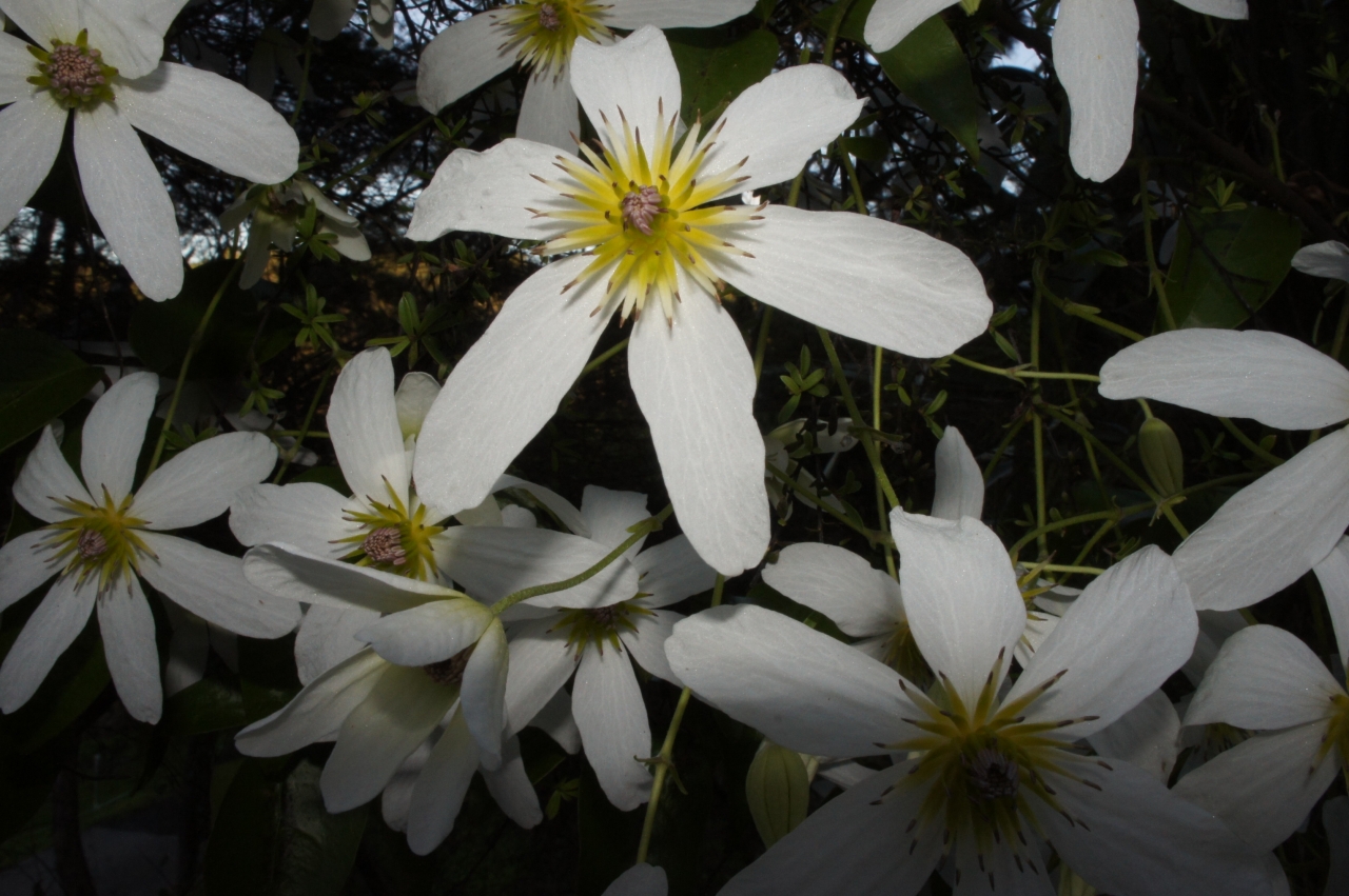 Maori had many environmental indicators for both the present and approaching seasons. One such plant indicator which appears in early spring is the puawananga, announcing its arrival with its beautiful delicate white flowers, as it rambles over its host plants or protrudes from the tree tops.