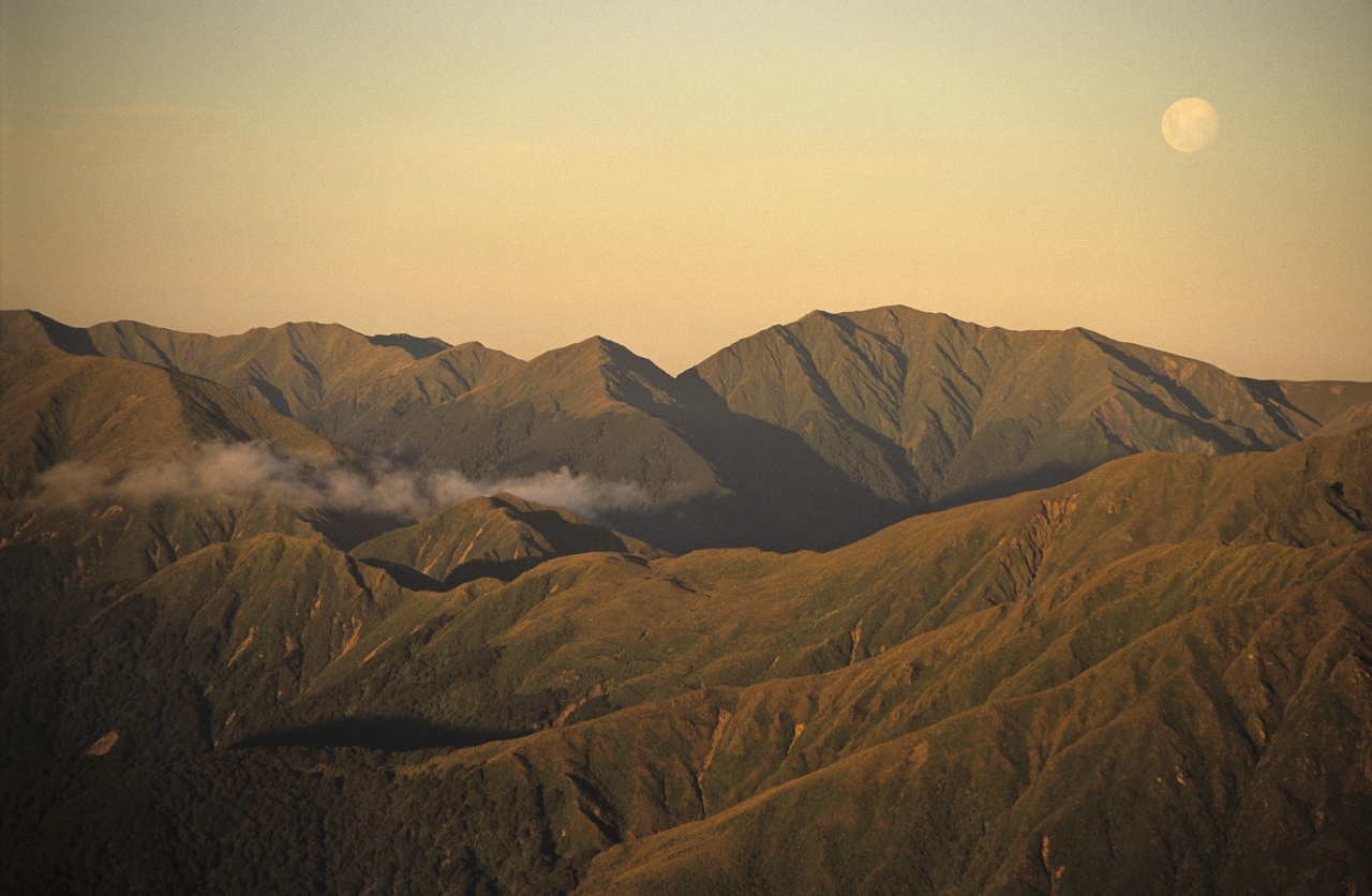 As a student, I spent many challenging and sometimes miserable days on the Tararua tops, battling wind, cold and fog, for which they are justly infamous. Only after shifting to Wellington did I begin to plan my Tararua trips around fine weather, and what a difference that made. The great allure of the range perhaps hit me most forcefully one evening at Bridge Peak, near Kime Hut, when the low westering sun illuminated a large swathe of tops. A pale moon rose in the east, and the complex patterns of the ridges was highlighted by the unusual coppery light. It was an evening to remember.