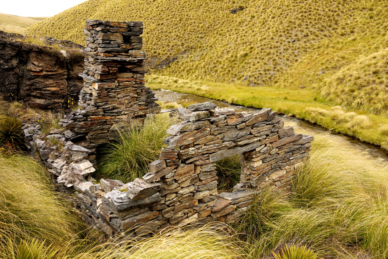 One such consortium of 18 miners began an ambitious project in 1864 to divert Campbell Creek and mine its stream bed. This required a 200m-long tunnel to be dug through a slip that had partially blocked the gorge. They became known as the ‘Tunnel Party’ and some of the original miners were still working the claim 35 years later. They lived in a small cluster of stone cottages with thatched roofs deep in the gorge, just above the creek that was the scene of their endeavours. Records do not accurately show how much gold was won from here and nearby Potters Goldfield, but a figure of $9 million has been mentioned.