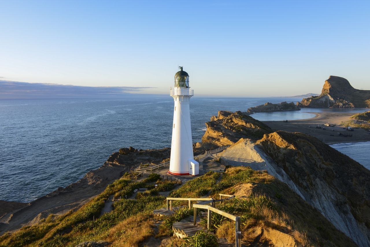 The beach, bay, headlands, and cliffs are wonders of the natural world and over them all rises the vibrant column of the lighthouse. The walk begins on the sandy flat beneath the light, where huge fishing boats are hauled ashore by tractors, ascends via the paths and stairways to the lighthouse and viewing platform and its jaw-dropping view, descends to the oceanside rock platform, where a hidden ladder accesses a lower cliff top and then regains the upward paths.