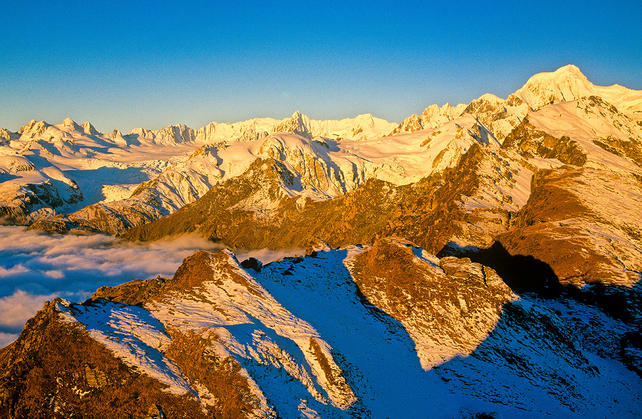 The ascent through the forest is steep and when you reach the 1021m summit of Mt Fox the climbing isn’t yet done. That’s because the exceptional view of the Southern Alps, Fox Glacier and out to the Tasman Sea is gained from Pt1345, a kilometre or so further on. Best climbed early in the morning, as cloud tends to roll in during the afternoon obscuring the extraordinary view.