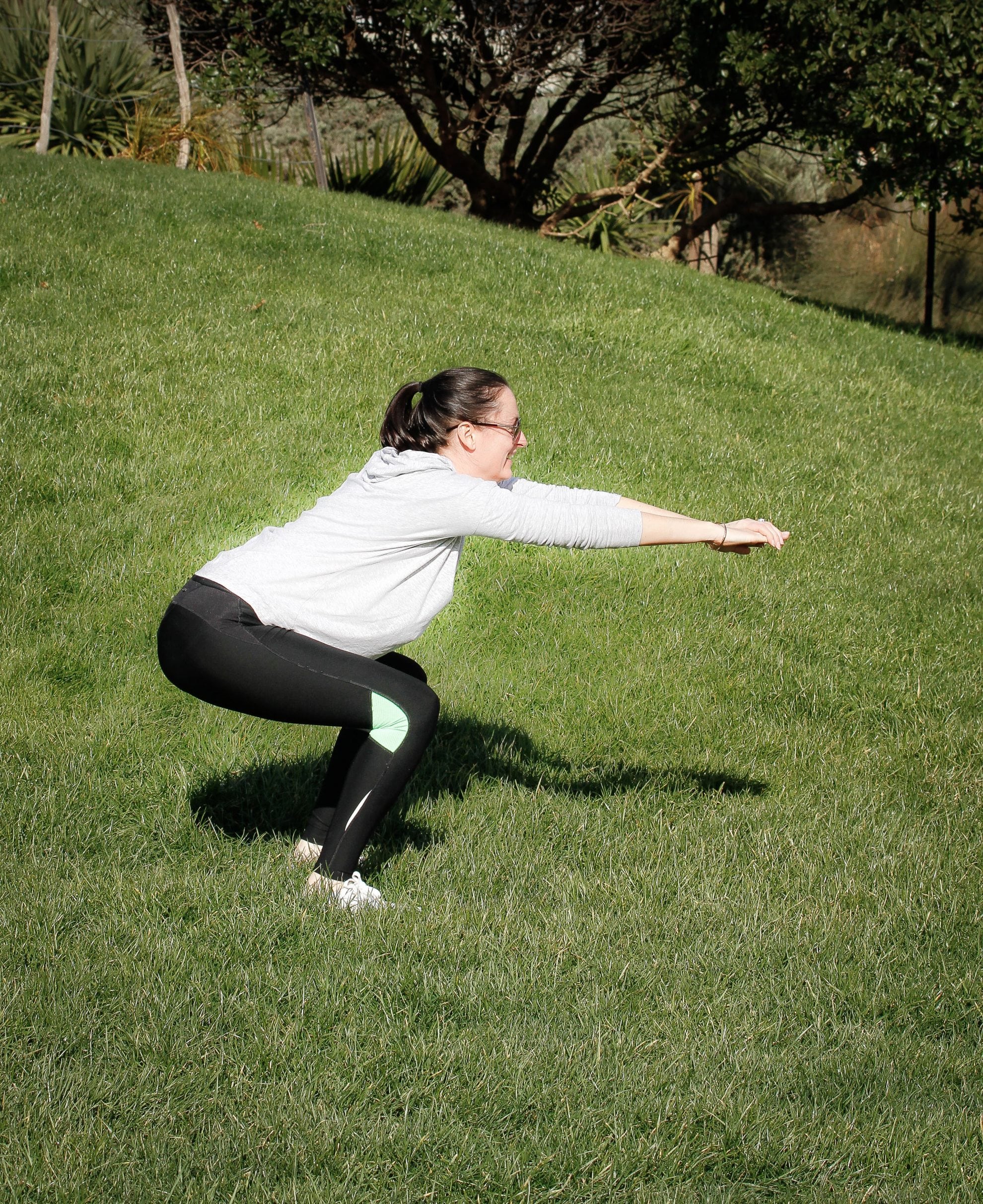 Challenge option: Hold leg squats for 30 seconds to 2 minutes; wear a full tramping pack; one leg squats.