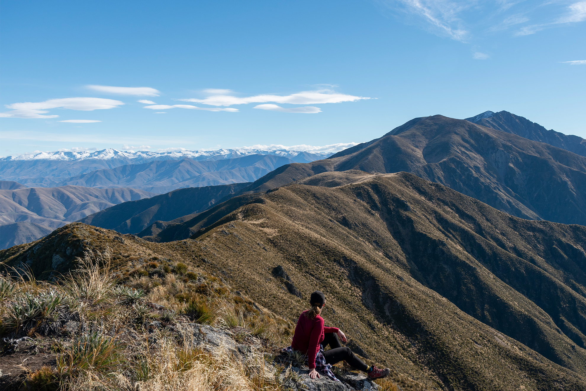 Peak Hill (1240m) stands between the Rakaia and Wilberforce catchments and has possibly the best foothills summit view in Canterbury. The well-marked climb is steady but not relentless, and the views expand as each waypoint is passed. The track up the southeast ridge winds around and over several small knobs before a final short steep push to the broad summit. It’s a great spot for lunch, but take plenty of water as there’s none here. The nor’west gales can rage unabated for days over the wide and spartan slopes.
