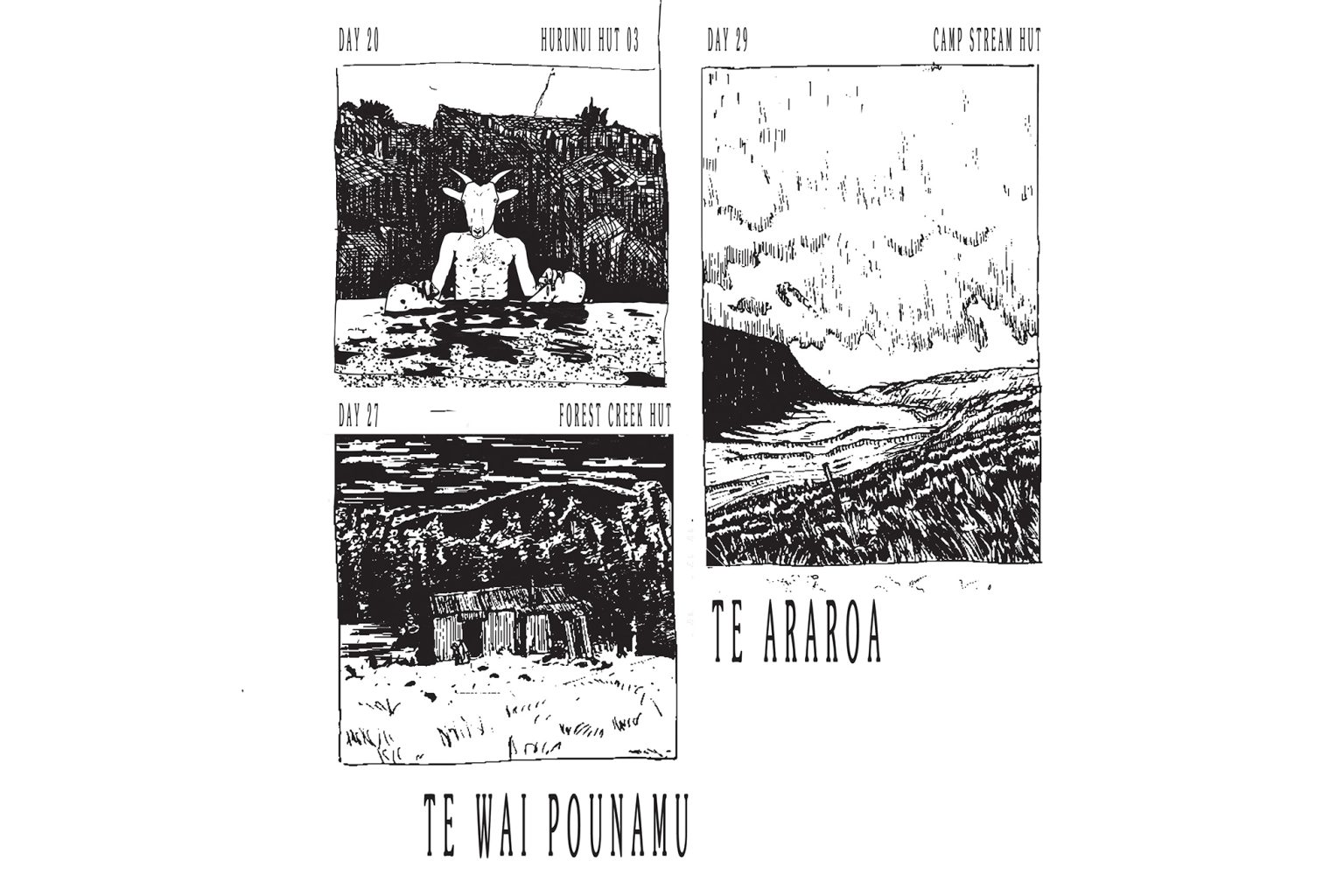 In summer 2022, artist Jacob Paterson walked the South Island leg of Te Araroa, tramping 1400km in 60 days. He created a drawing each day and has recently been revising them. He shared a sneak preview with Wilderness.