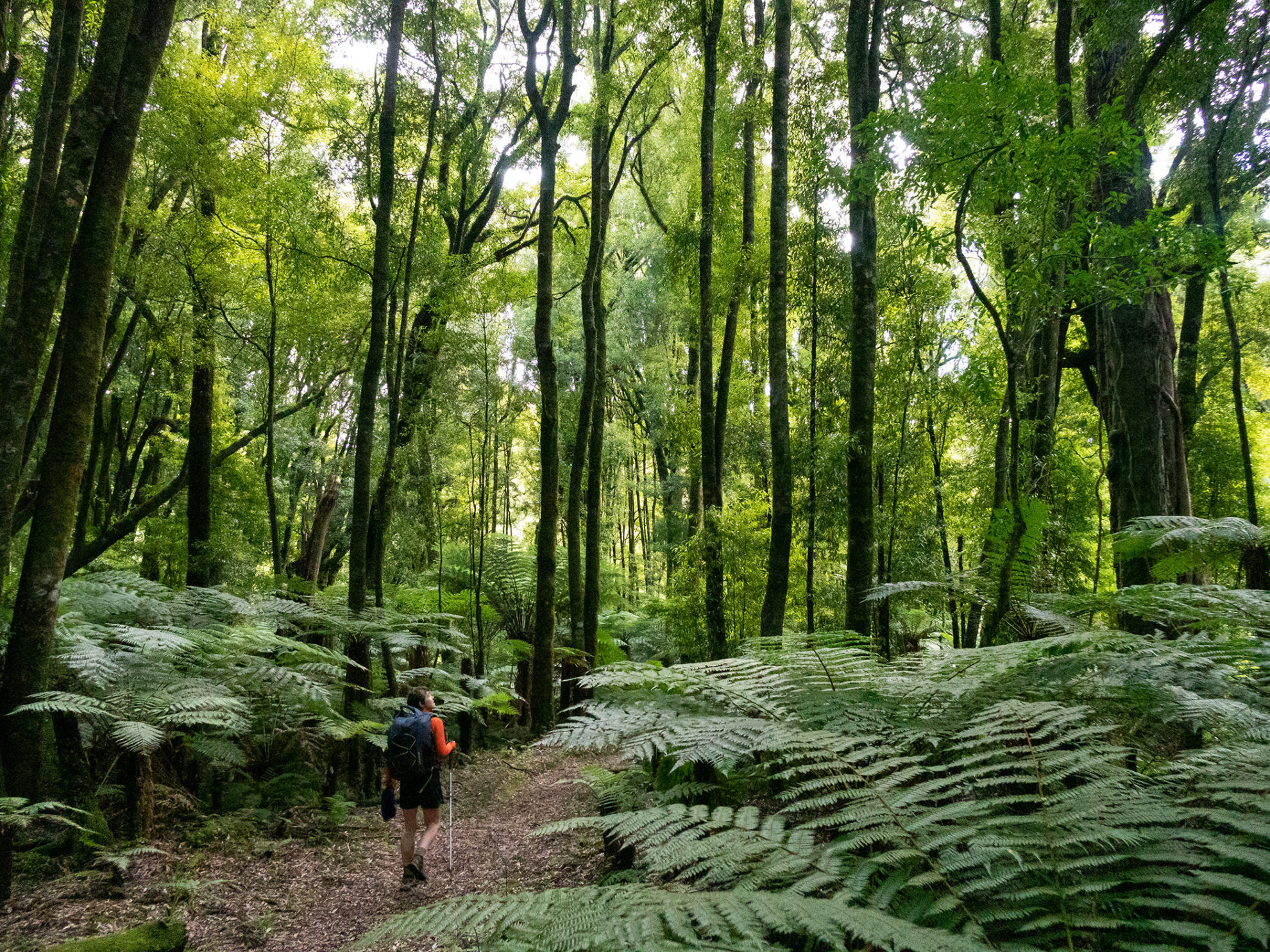 When Taupō erupted 2000 years ago, its ash spread over a huge area, flattening forests. The Whirinaki ash was up to 50cm thick, providing fertile ground for the growth of a new forest. Magnificent rimu, tōtara, kahikatea, mataī and miro flourished. The existing forest park is a remnant of these forests. These great podocarps grow in a rare density offering a sense of the forests that once dominated Gondwana. A hard-fought conservation battle in the 1970s and 1980s thwarted logging plans for the area, and Whirinaki Te Pua-a-Tanē Forest Park was gazetted. Whirinaki lies about 90km south-east of Rotorua, adjacent to Te Urewera. Together, the trees of Te Urewera and Whirinaki form the largest tract of forest in the North Island.