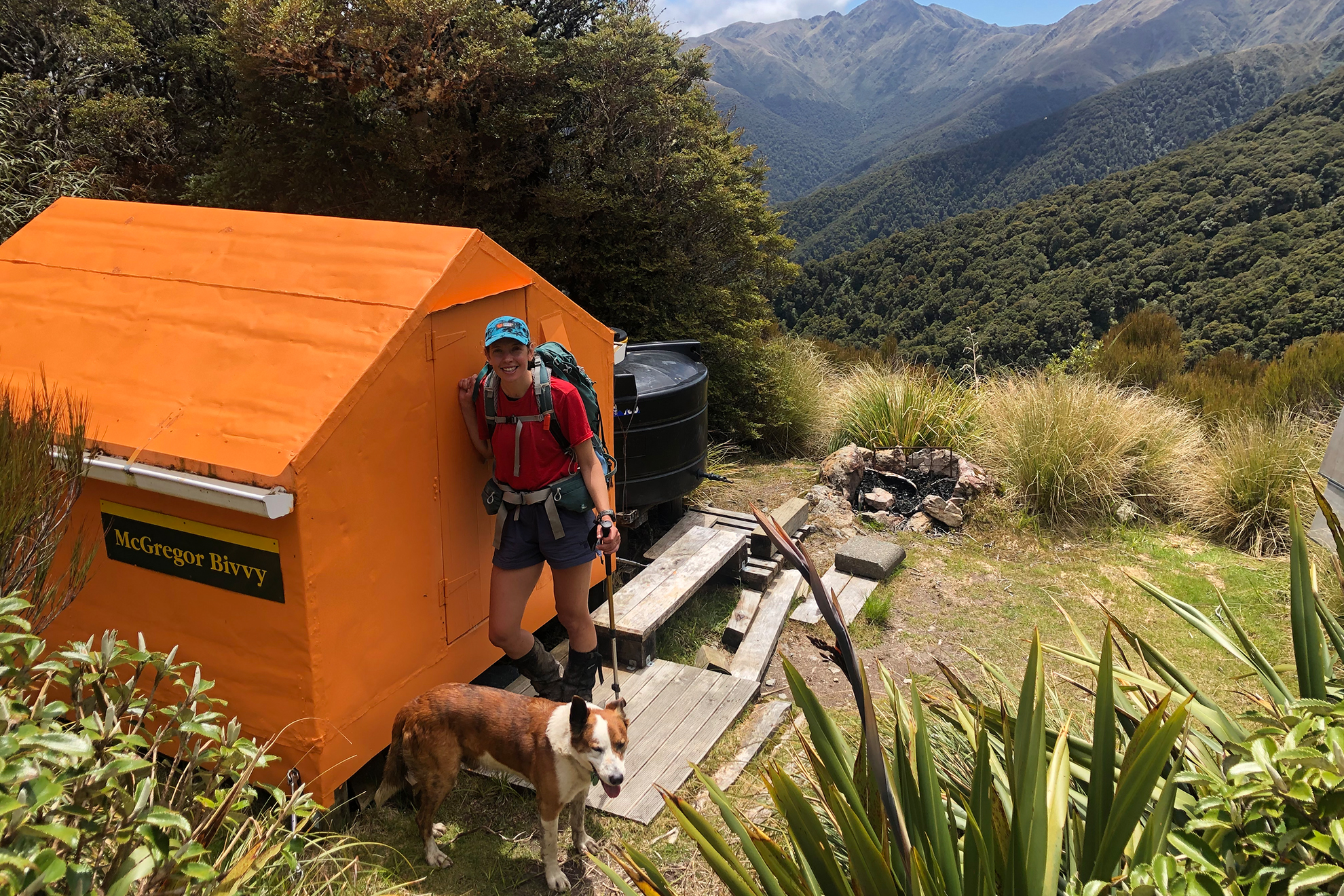 My husband James and I live in Upper Hutt. We’ve been into the Tararua a bit, enough to get struck by dehydration on Marchant Ridge and battered on the notorious steel ladder near Maungahuka Hut. We have a dog, Boo. He’s orange and white with a delightful nature and he loves tramping with us. He’ll even carry his own doggy backpack. Due to its classification as a forest park and its lack of kiwi, Tararua is Boo-friendly.