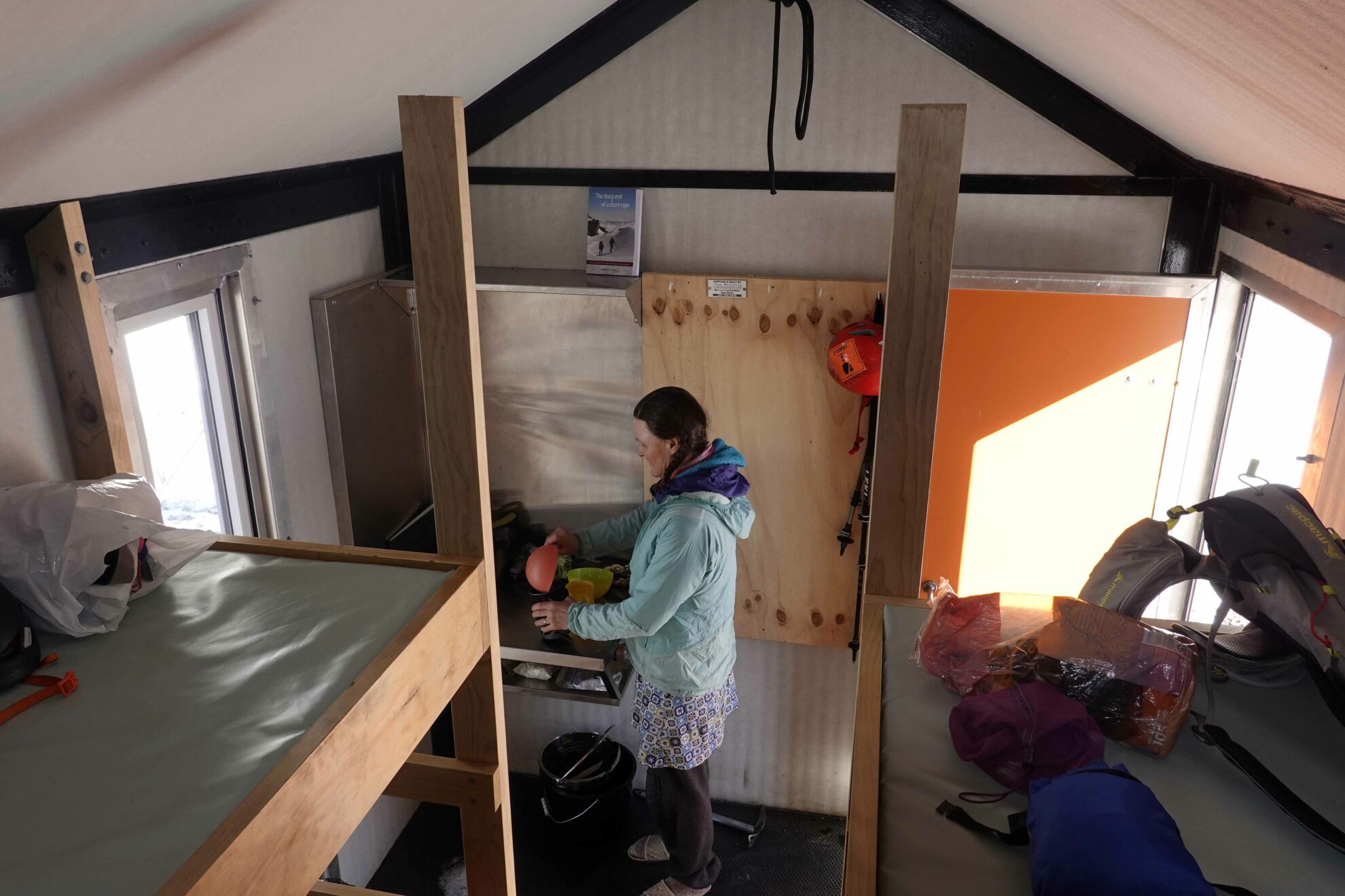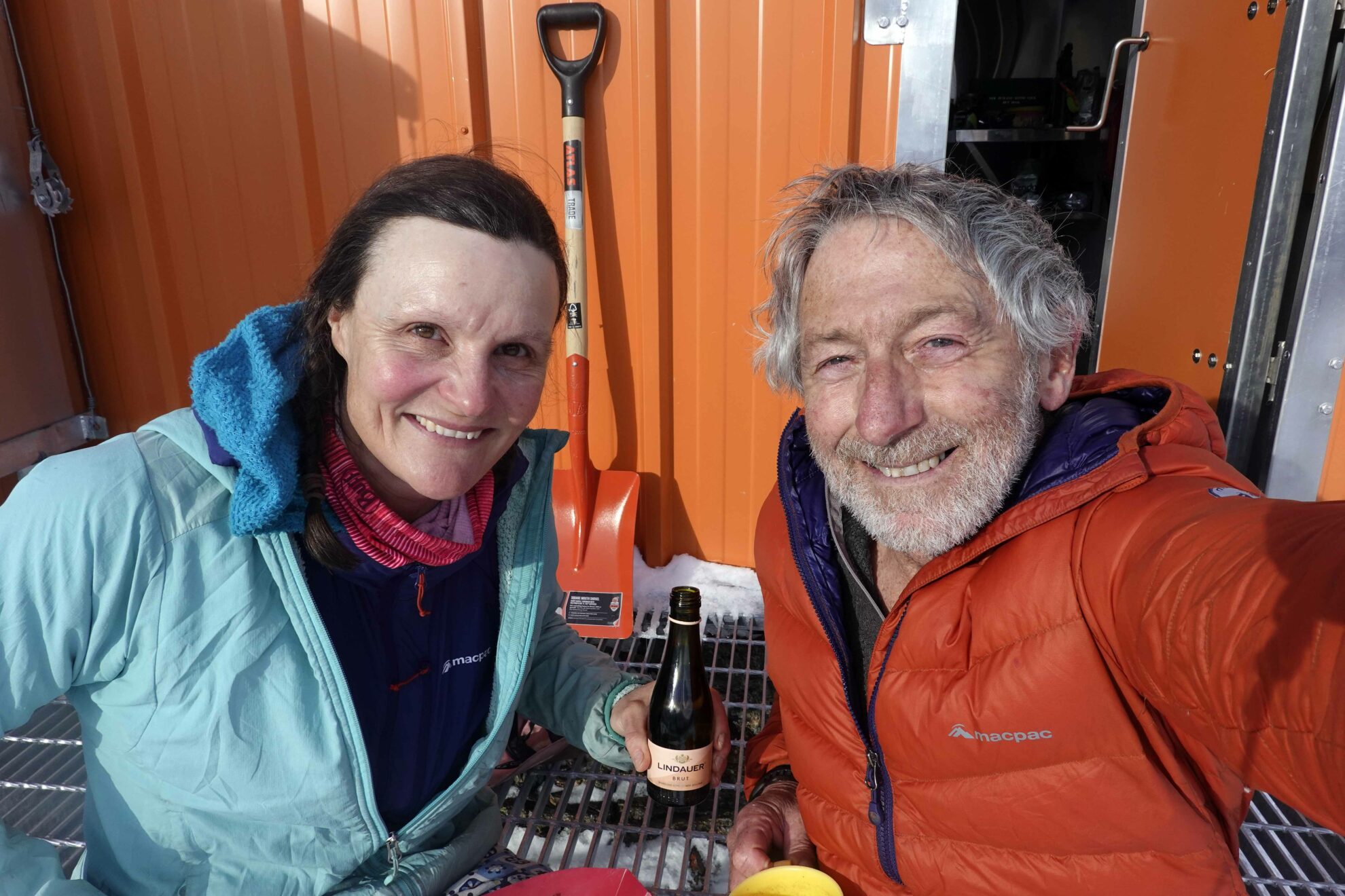 We were the first at the hut since the builders left, six months ago. The logbook told us that, and so did the small bottle of unopened champagne. We chilled it in the snow then toasted all those who made this hut happen.