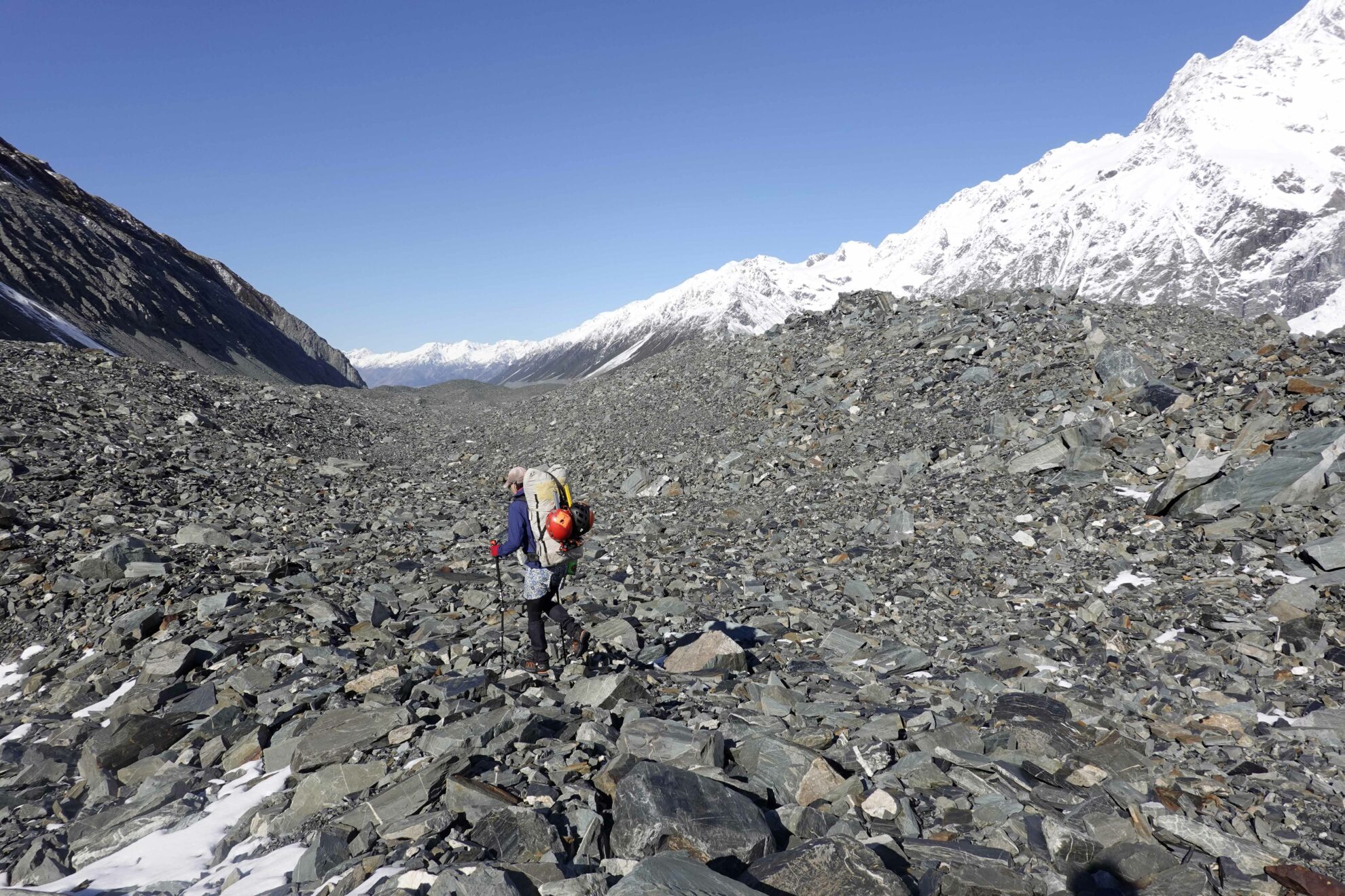 Lying on the warm red rock outside the new Beetham Hut, we gazed up at the giants of the Southern Alps: Aoraki/Mt Cook, Mt Tasman, Mt Haast, Mt Haidinger, and Elie De Beaumont. It felt gobsmackingly good.
