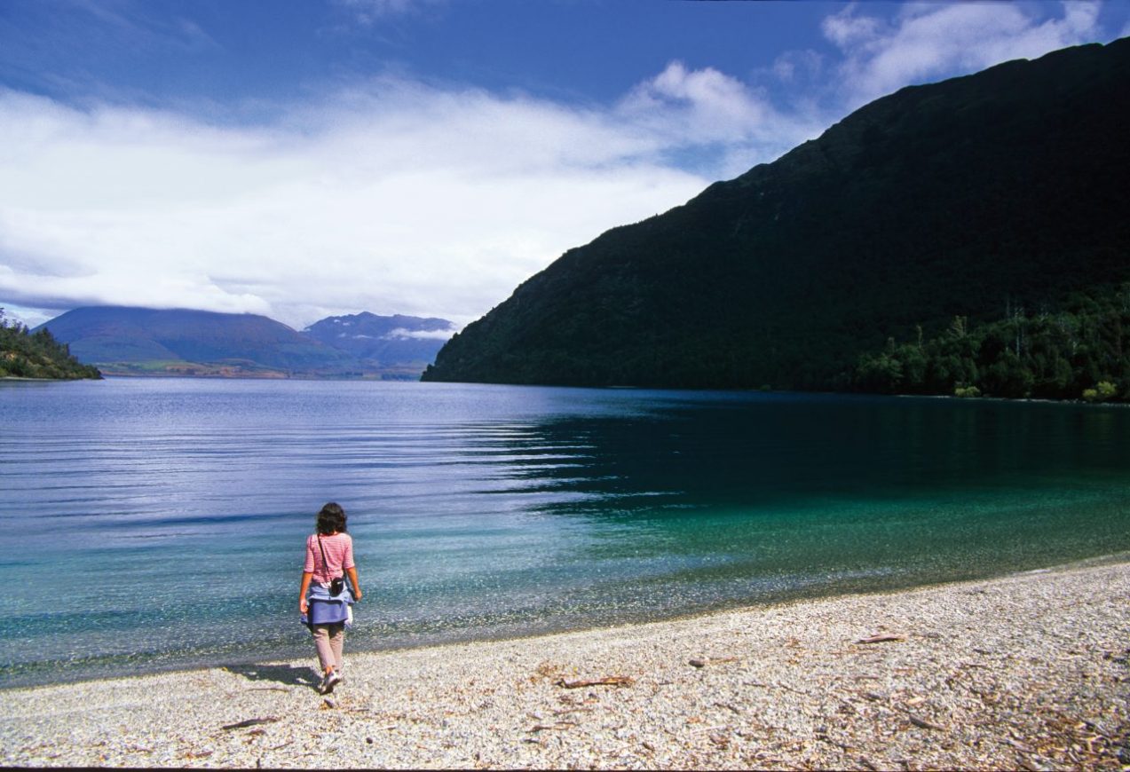 It’s warm and still as we descend from the roadside on the Queenstown-Glenorchy route, through regenerating forest to the horseshoe-shaped Bobs Cove on the northern shore of Lake Wakatipu, north Otago.