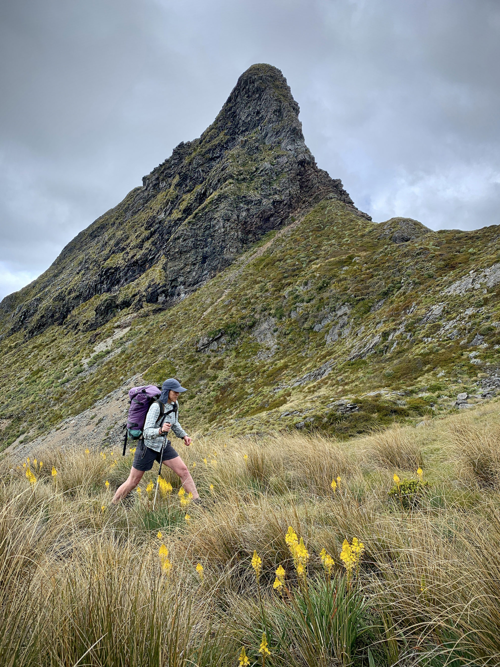 I’ve had a few tramping romances in my time but until this trip never a night under a drunken sailor. The dramatic scenery clearly evoked by such names as the Dragons Teeth and the Drunken Sailors is a major feature of this area of Kahurangi National Park. We also delighted in evening dips in sun-warmed tarns, multi-coursed dinners in fine company, long sun-bathing lunch breaks and, courtesy of predator control, a great birdsong soundtrack.