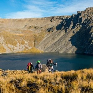 The Valley of the Trolls is reached from Harris Saddle by tracing around the western side of Lake Harris via a goat track. The valley is a fragile swampy area so you’ll need to be careful as you pick your way through the swampy tarns. At the head of the valley, the outlet of Lake Wilson descends as a waterfall down a deep gut in the wall.