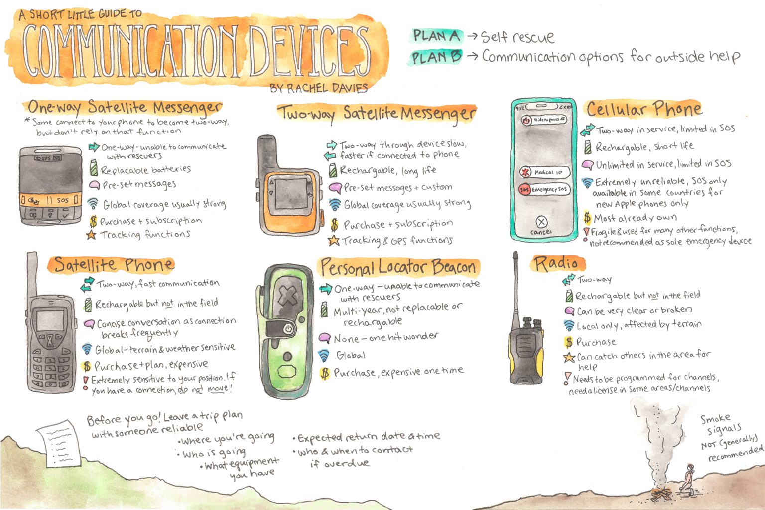Plan A: Self-rescuePlan B: Communication options for outside help One-way Satellite Messenger*Some connect to your phone to become two way, but don’t rely on that function. Two-way Satellite Messenger Satellite Phone Personal Locator Beacon Cellular Phone Radio Smoke signals NOT (generally) recommended. Before you go! Leave a trip plan with someone reliable.