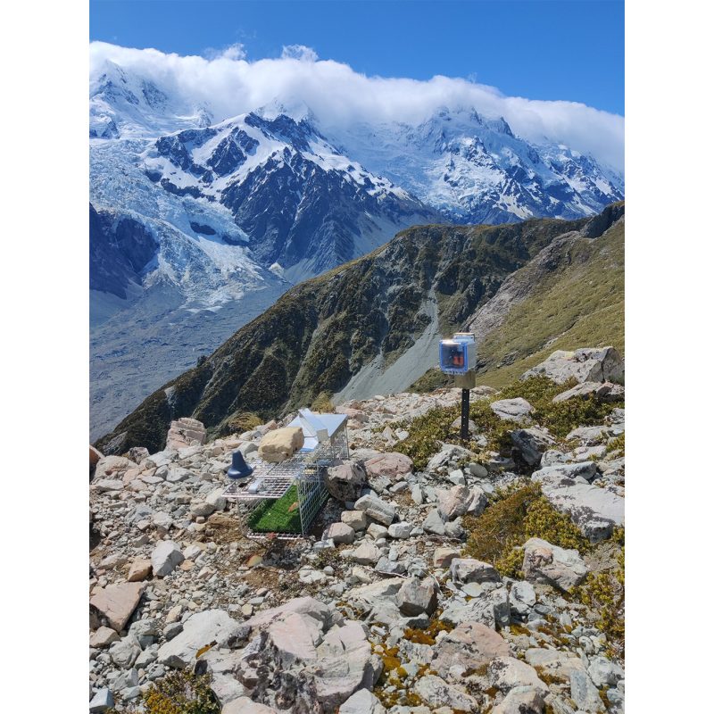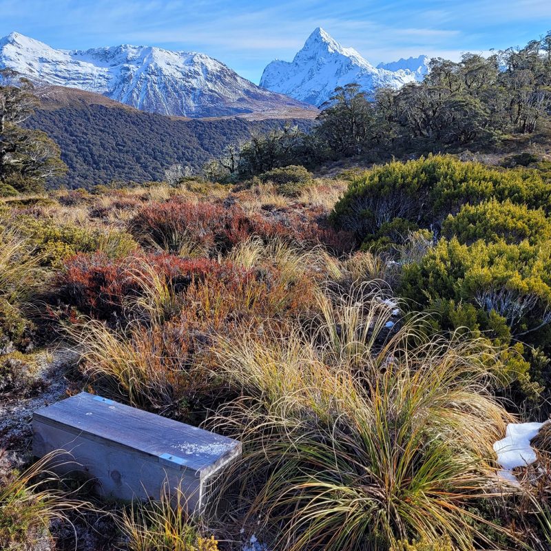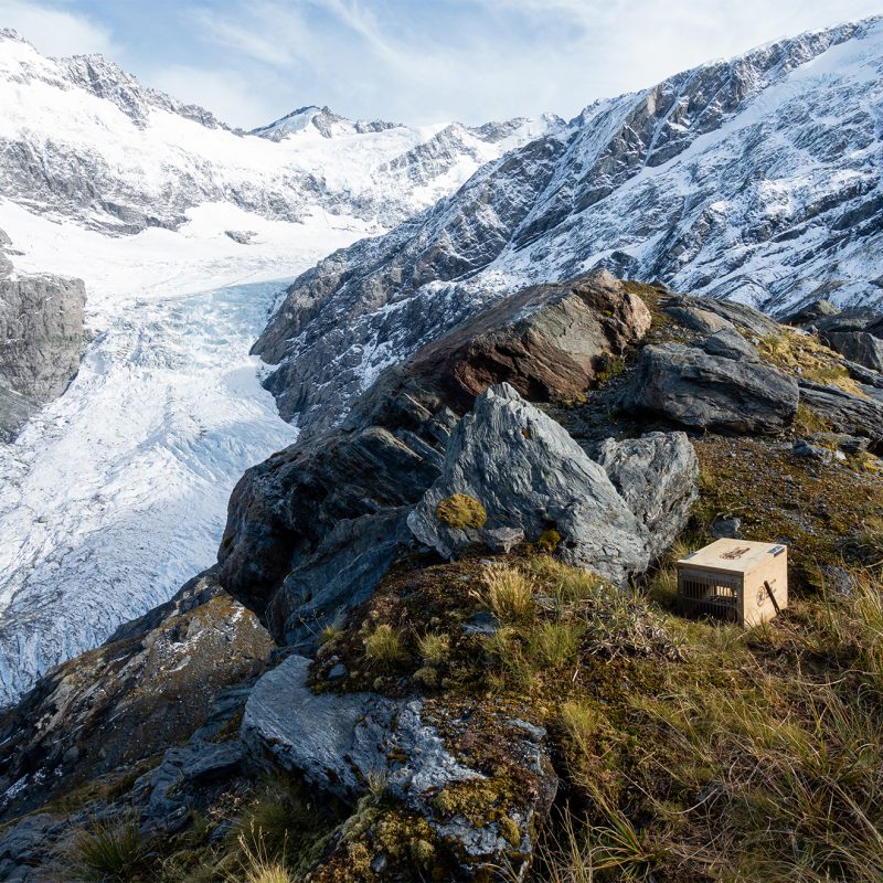 This stoat and rat trap, set by the Southern Lakes Sanctuary team, is on Cascade Saddle in Mt Aspiring National Park. At over 1800m, it is part of one of the country’s highest traplines and protects pīwauwau rock wren, kea, giant wētā and lizards.