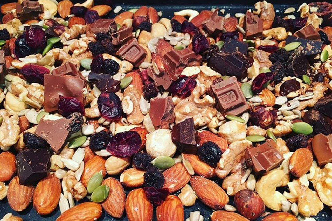 Trail mix can be stingy with its chocolate-to-nut ratio, so why not treat yourself to this luxe scroggin, featuring not one but two types of Whittaker’s chocolate. I like to use the deluxe nut mix for variety and quality and the addition of dried cranberries adds a mouthwatering bite. But really, the ingredients list is a guide only – if you like banana chips, white chocolate, dried raspberries, pretzels or anything else in your scroggin, go for it. The key is to nail that sweet and salty ratio.