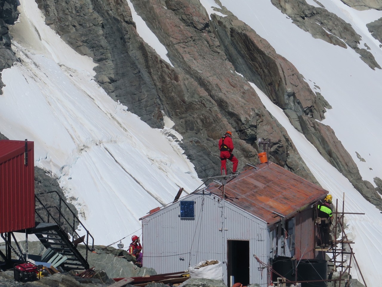 DOC workers have taken advantage of a fine weather window to get crews and supplies for renovations to the high-altitude hut in Aoraki/Mt Cook National Park. Perched at about 2200m, the 14-bunker hosts a number of ski-touring and climbing parties throughout the year.