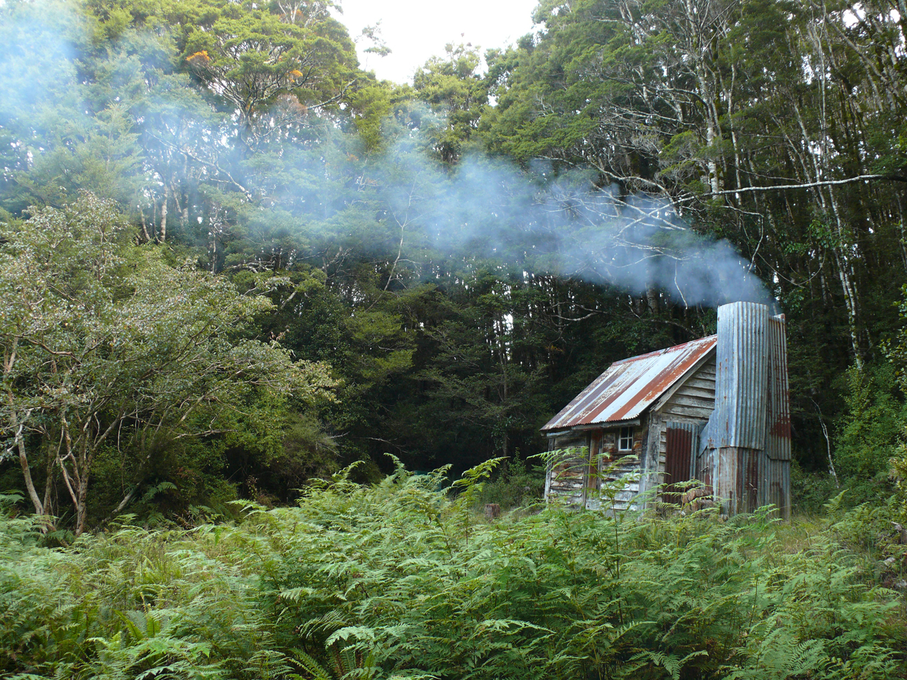 “Sometimes the more flash things get inside some of the bigger huts, you’re about as isolated as if you’re sitting at home looking out at the garden. There’s not a connection. The thing I like about places like Slaty (Slaty Creek Hut, Waiheke River), you can have the door open, the fire going and be watching robins in the doorway. It’s all there, within a few feet.”