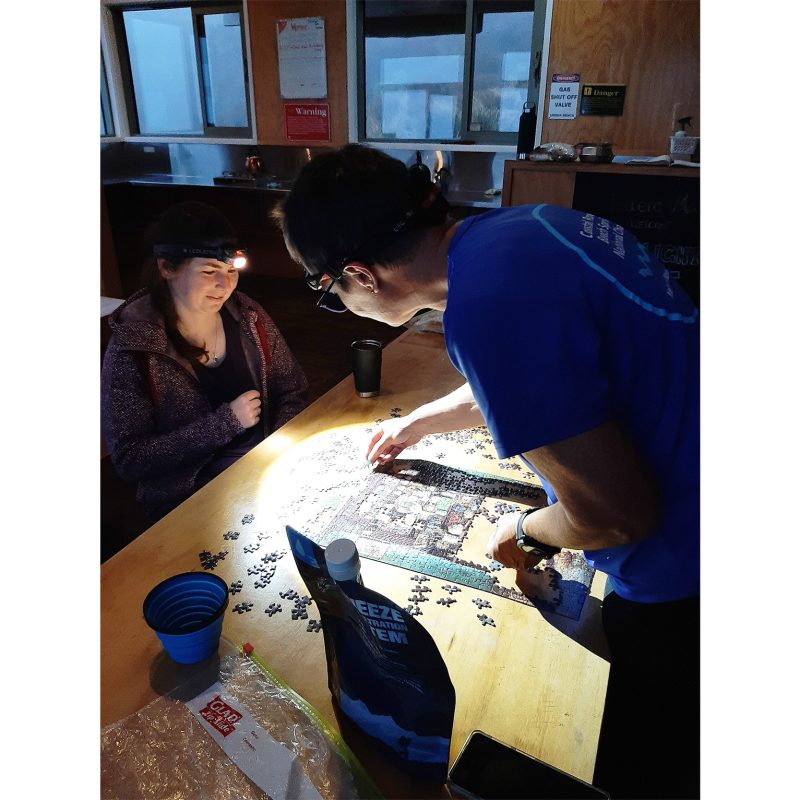 The jigsaw was very addictive and other trampers added to it throughout the evening. We worked on it with headlamps but got to the stage where we had to leave it two-thirds complete.