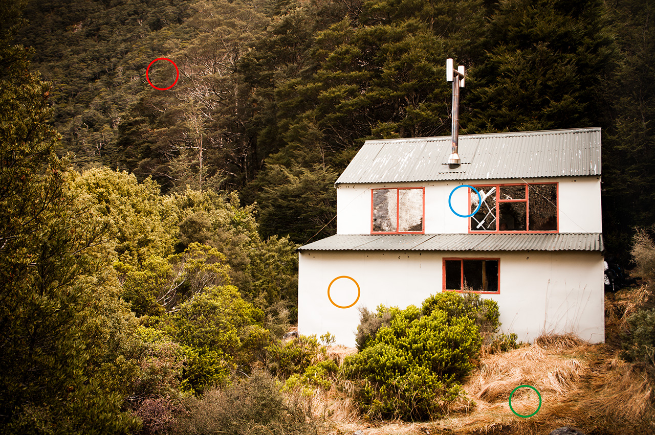 When photographing huts, it can be easy to end up with just a close-up shot of the hut or lots of boring sky. Try to include the surrounding landscape, as well as the hut, to give it some environmental context and show its backcountry location.