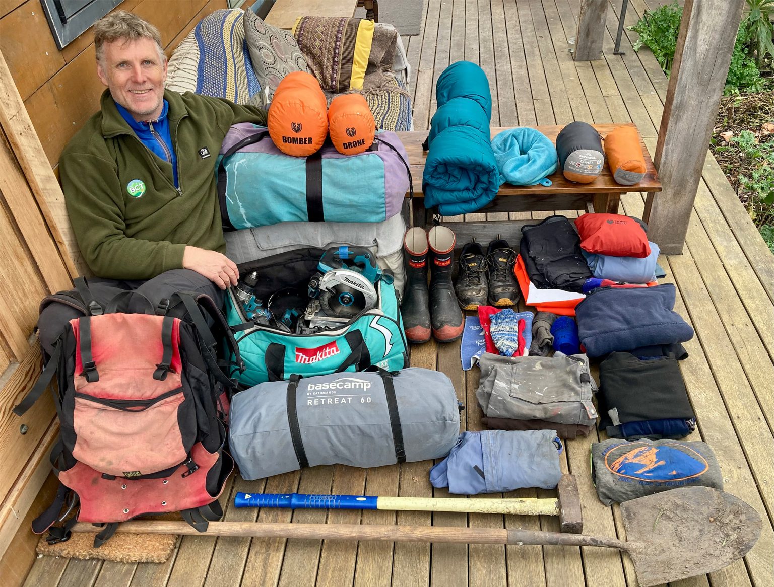 I take my own Makita tool bag with the basics, and these items tend to get shared around the group. I also have a couple of Stoney Creek camping flys that are really handy and light – they readily create a dry outdoor work space or cover gear and materials when needed.
