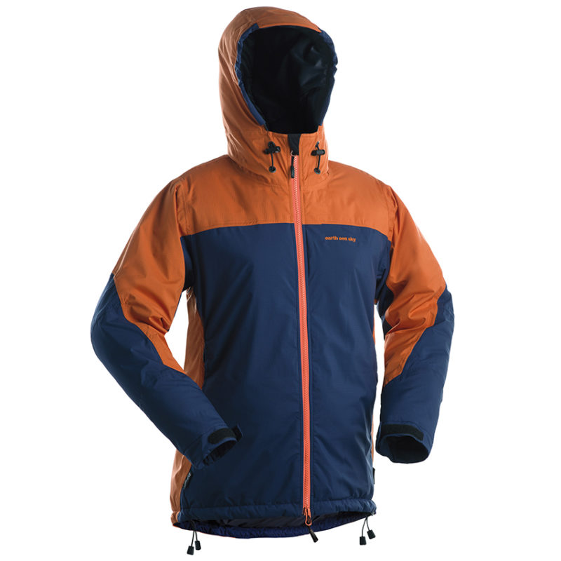 \A fully seam-sealed waterproof jacket for demanding conditions. It uses Primaloft Gold synthetic insulation and has articulated elbows and gusseted underarms for freedom of movement. It has a full front zip with storm flap, an adjustable hem drawcord, an internal chest pocket and two handwarmer pockets. Made in New Zealand. 694g (m/w). www.earthseasky.co.nz