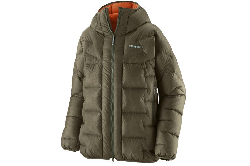 \This climbing jacket uses 800FP down and has a two-way zipper with two snap-together internal storm flaps to make it belay device-compatible. It has abrasion-resistant fabric, a helmet-compatible hood, broad shoulders and discontinuous quilting for mobility and loft, zippered hand-warmer pockets (it stuffs into one) and interior drop-in pockets. Made in a Fair Trade-certified factory. 595g (m), 507g (w). www.patagonia.co.nz