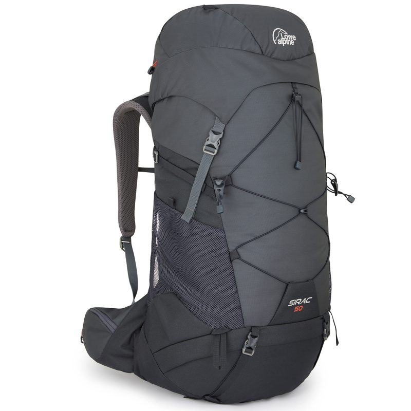 This hydration-compatible pack offers walking pole attachments, an integrated rain cover and an elasticated stash pocket. It has an adjustable Air Contour X carry system, a sleeping bag compartment with divider, and a sternum strap with whistle. Fabric 420D nylon (50% recycled), 100% recycled 600D base Capacity 50l Weight 1780g