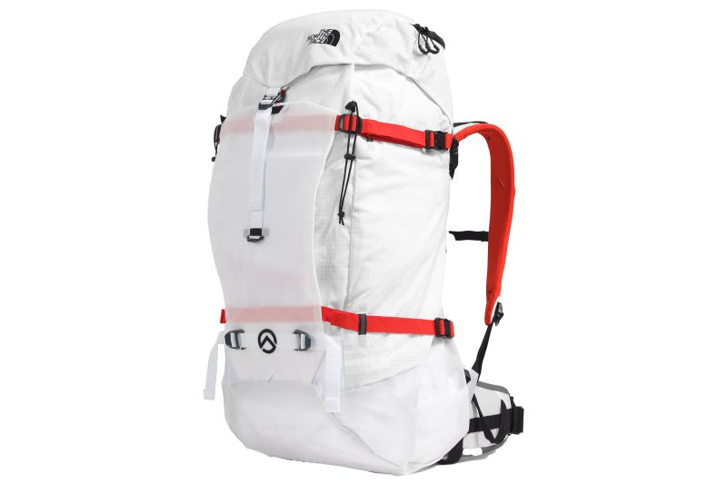 This pack is built for summit approaches and has semi-translucent fabric to help make gear easy to locate. A floating lid, external pocket and multiple compression straps add versatile storage. Features include ice-tool holders, foam back panel and shoulder straps, hipbelt and wand pockets, hydration sleeve and 360-degree reflectivity. Fabric 210D recycled ripstop nylon, 210D TPU-coated nylon ripstop base Capacity 65l Weight 1650g.