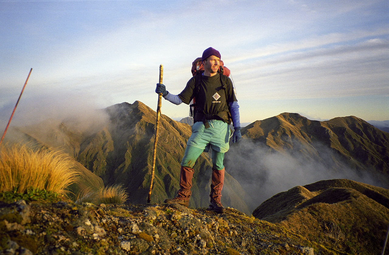 Geoff Chapple loves this corner of the country: “It’s like a desert – a fantastic experience. I discovered I could walk at night [here] – what other trail in New Zealand can you walk in the dark? You don’t trip, you don’t stumble, the stars are wheeling overhead, you watch the meteors burning out in green bursts all over the sky. The sun goes down, the moon comes up, the sun comes up, the moon goes down. That is part of the enchantment of long walking – fitting into a vast natural rhythm.”