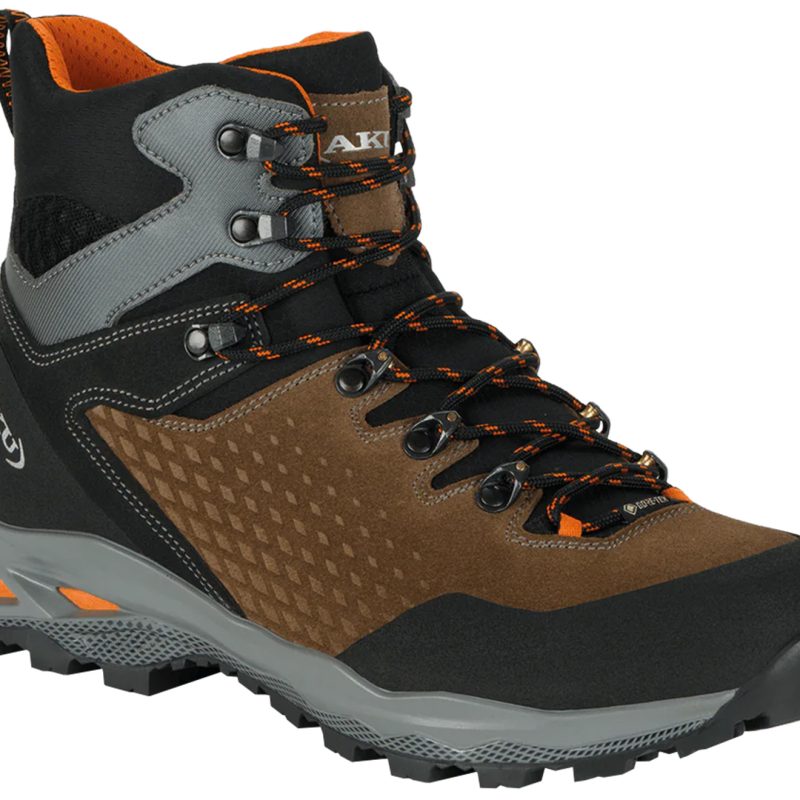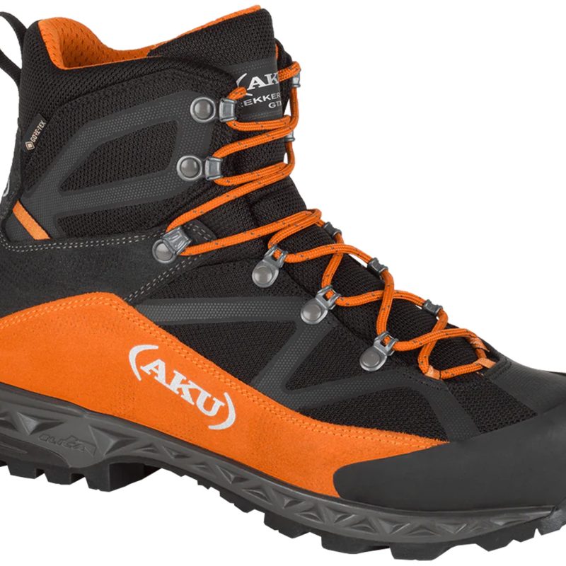 A multi-day, mixed-terrain tramping boot with a 1.6mm suede upper and toe and heel rands. It has a waterproof Gore-Tex membrane and breathable Air 8000 lining, all-metal lace hardware, a stretch tongue for precise closure, and even weight distribution across the foot with AKU’s Elica Natural Stride System. There’s a PU and EVA midsole with 6–4mm nylon shank, and Vibram outsole. 1310g (m), 1080g (w). www.gearshop.co.nz