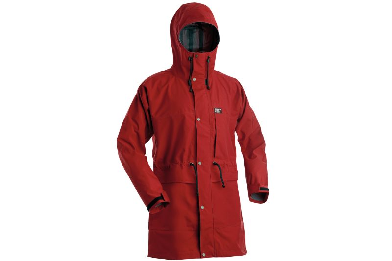 A generously fitting three-layer tramping jacket with extra ‘keep your shorts dry’ length. It has an oversized and fully adjustable hood with wire peak, five pockets, is fully seam sealed, has a double storm flap front, a waist drawcord with non-slip toggles, and an underarm gusset for easy movement. Made in NZ. 726g (m), 626g (w). www.eathseasky.co.nz