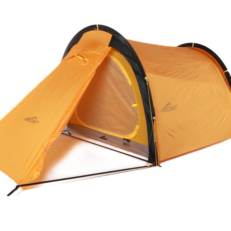A two-person, four-season integral-pitch (fly and inner pitch simultaneously) tunnel tent designed to withstand high winds and shed snow. It’s fully seam sealed with a catenary cut rainfly, oversized vestibule, dual entrances, internally accessible vents, rear (airflow) window and eight mesh pockets. Fly can be pitched on its own. Fly 40D ripstop nylon, 2000mm+ Inner 20D ripstop nylon Floor 40D laminated nylon, 25,000mm Poles 2-piece alloy Ceiling height 110cm Area 3.88m², vestibule 1.8m² Weight 2797g. www.mont.com.au