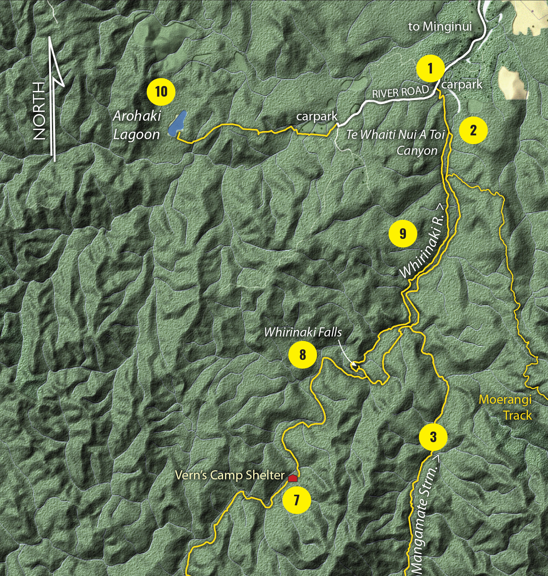 This three-day circuit offers a superb introduction to the 84,000ha park, which lies adjacent to Te Urewera. Together, they form the largest remaining contiguous tract of native forest in the North Island. The circuit offers good benched tracks (thought about one-fifth of the circuit follows waterways which could become difficult or impassable in wet conditions) with generally easy gradients, two excellent huts, plus the chance to hear kākā and see whio. The forest is one of eight ‘whio forever’ sites around the country where blue ducks are protected by a predator control programme.