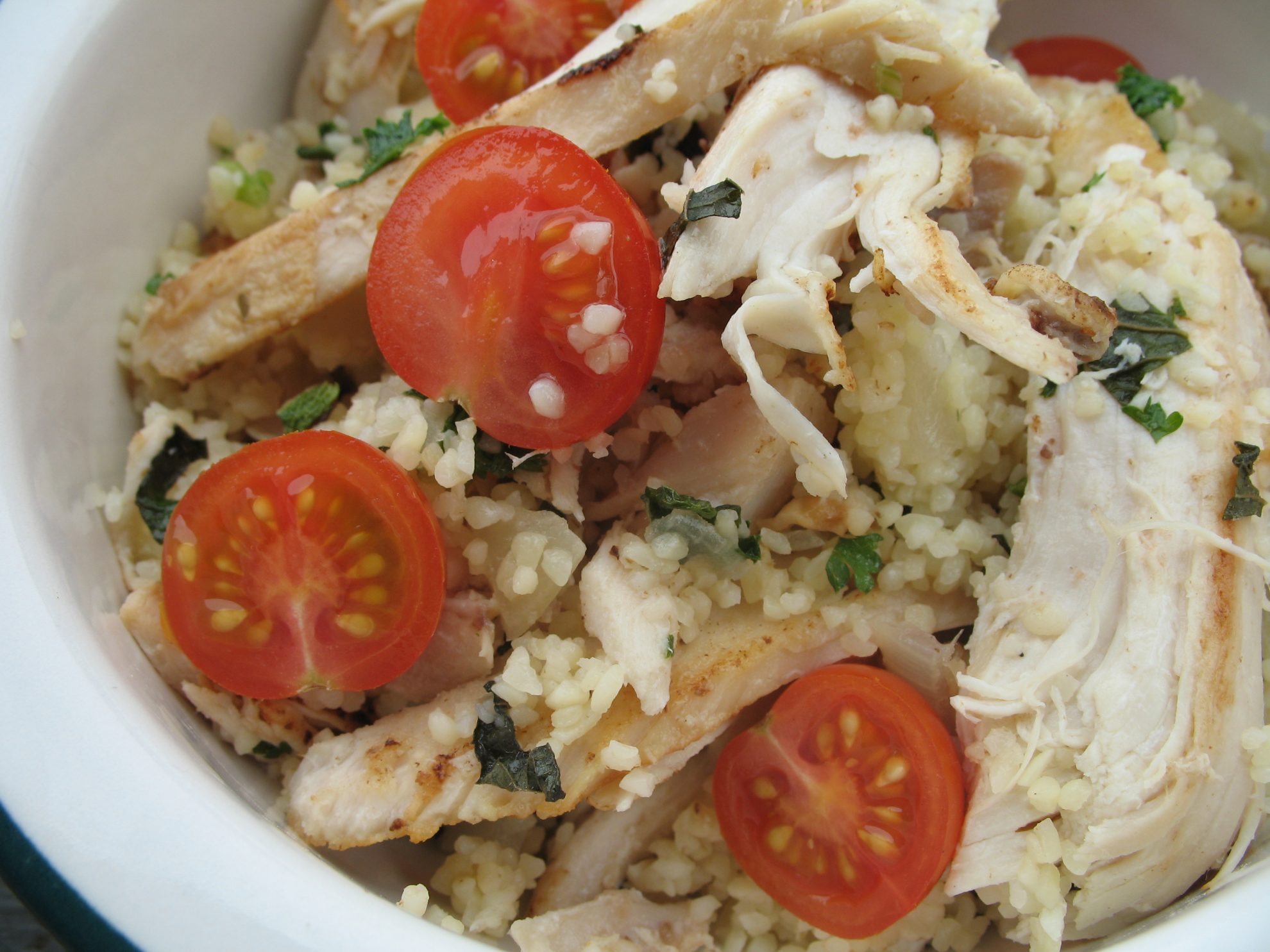 Yet most recipes are shared now by being typed on the computer and flicked through on email. So I have no shared memory of this meal – but I do like Jane’s friend’s Warm Chicken Tabbouleh. Leftovers are great for lunch the next day, served up cold and topped with fresh raw tomatoes.