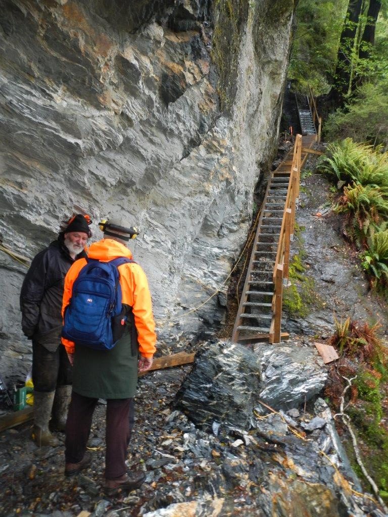 Work on the track included 2.7km of track rerouting, 111m of blasting, 13m of new stairways, and a 12m steel truss bridge. “Numerous man hours, come rain or shine, have been needed for the hard slog of hand clearing debris such as fallen trees,” said Owen. “The track will remain more challenging between Daleys Flat Hut and Bedford Bridge so it is recommended that trampers prepare themselves for a longer day and more arduous conditions over that section.”