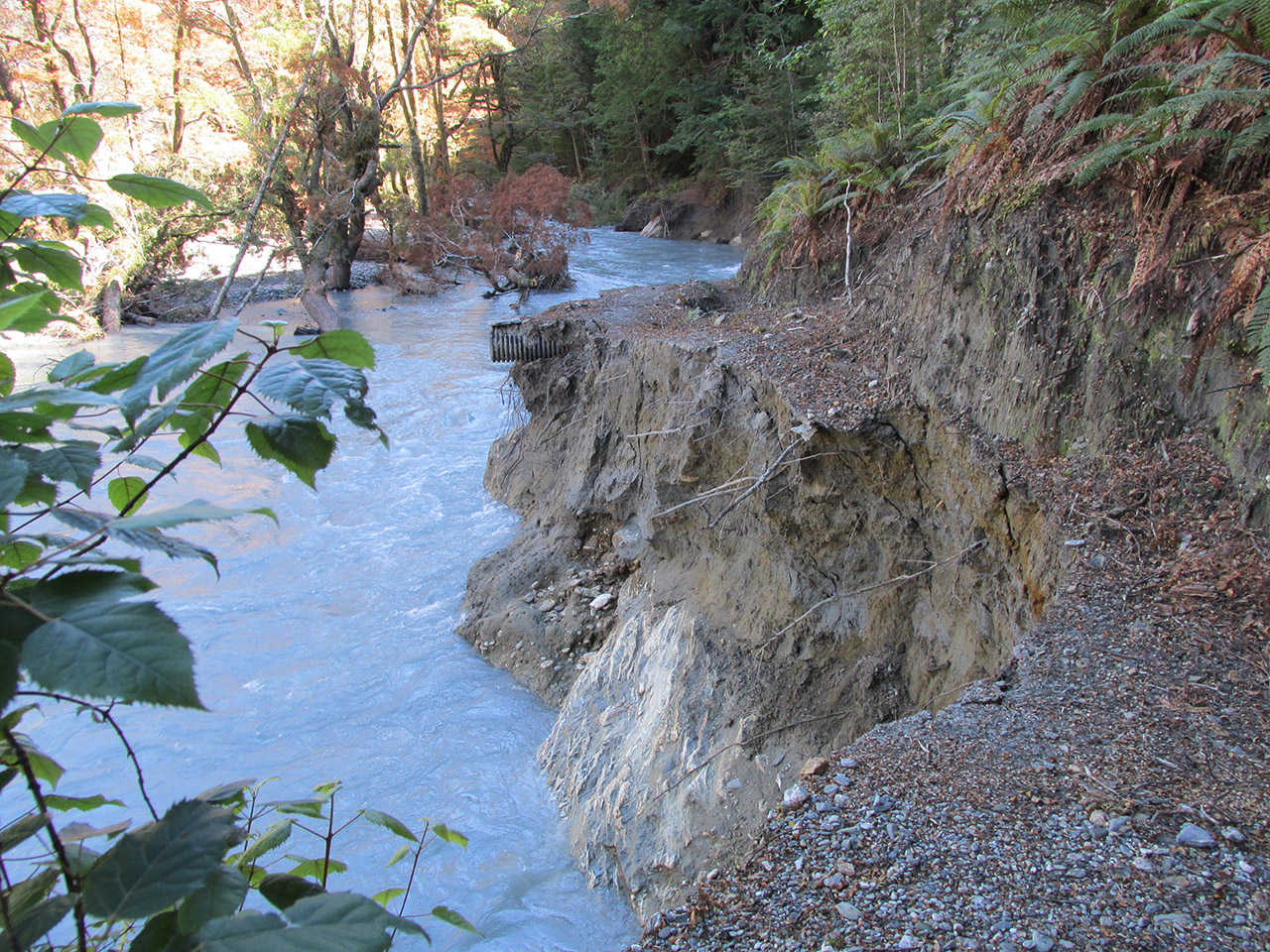 Finding an alternative route will be a tough job for DOC staff, as this section is riddled with bluffs. “It looks quite gentle on a topo map but when you get in there it’s as rough as guts,” said Chris Hankin from DOC’s Queenstown office. “Unfortunately we’ll have to rebuild the track a long way back from the river.”