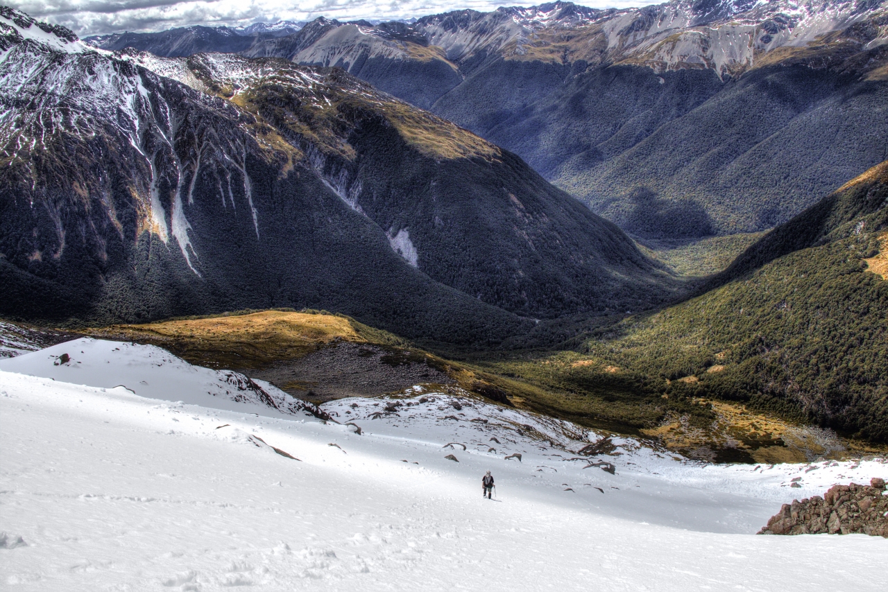 Travers Valley, Nelson Lakes National Park Nelson Lakes has a great variety of dramatic scenery. On a fine day above the treeline, the panoramic views are second to none. This view of Travers Valley was gained after a trip to the saddle just north of Mt Cupola. We had been staying at Cupola Hut and, […]