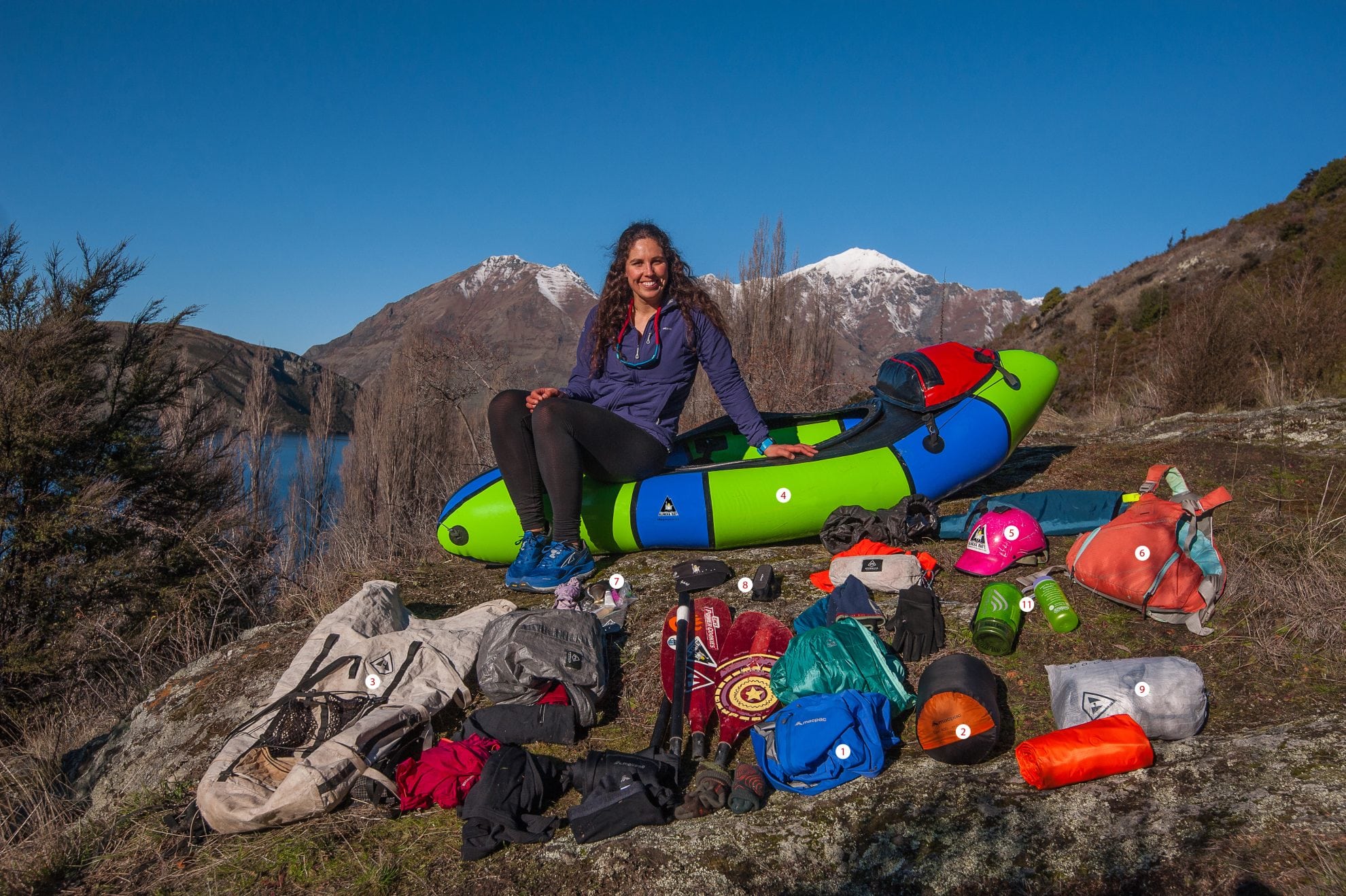 I always pack thin merino layers to wear against my skin. My favourite midweight layers include a Macpac Pisa jacket, Macpac Pulsar insulated jacket and a Patagonia Houdini. On cold packrafting trips, I wear a thin fleece onesie under my drysuit.
