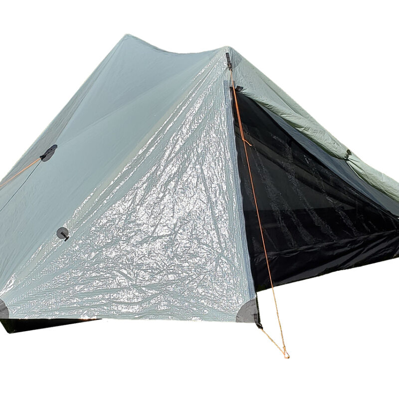 This is a spacious 2.2m2 one-person tent made in New Zealand. It has double wall construction, 110cm ceiling height, dual doors and vestibules (0.85m2 each), fly-first pitch and is supported by walking poles. Its UltraTNT ripstop laminate fly is rated to 140,000mm and the floor 4000mm. 765g. www.kiwiultralight.co.nz