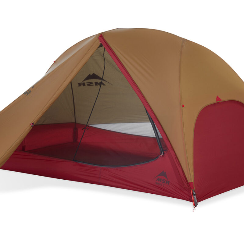 A semi-freestanding two-person tent with vertical walls for headroom (99cm) and floor area (2.6m2). It has a vented seam-taped full-coverage fly and bathtub floor, two doors and vestibules, two DAC poles, and mesh inner with lampshade pocket. 1226g. www.marmotnz.co.nz
