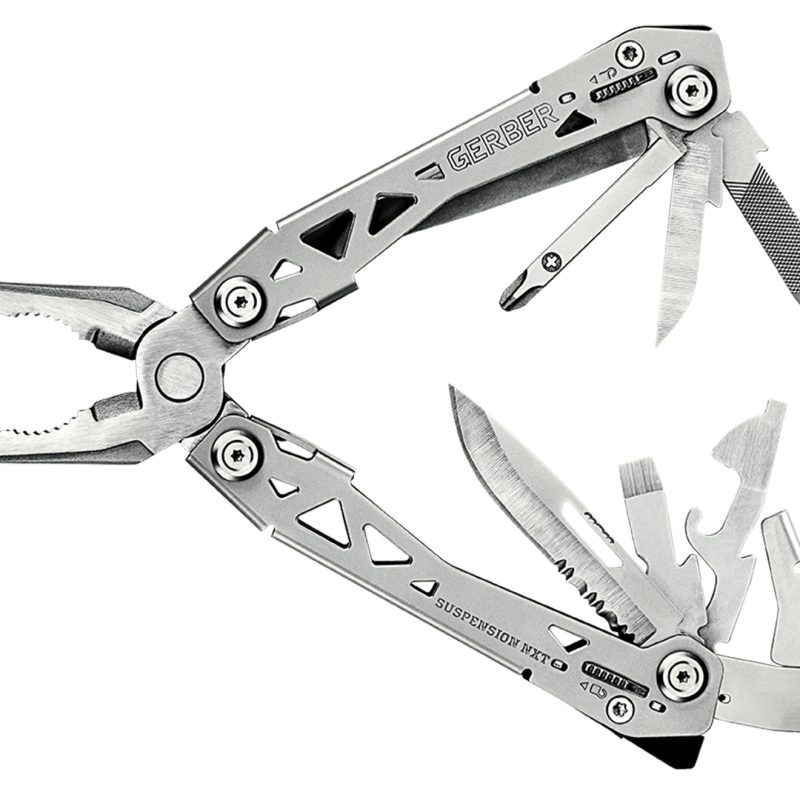 A smart 15-tool design with outboard locking tools, spring-loaded jaws and a sturdy pocket clip. New features include: wire stripper, medium flathead driver, awl, file, and ruler. www.huntingandfishing.co.nz