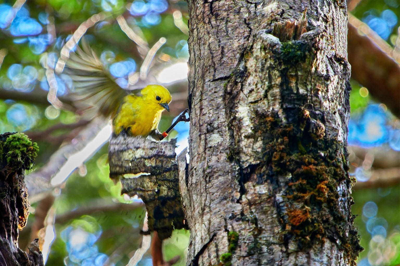The mohua nests in tree cavities while the pōpokatea builds a tightly woven cup-shaped nest up to 15m above the ground in a tree fork or in dense foliage.