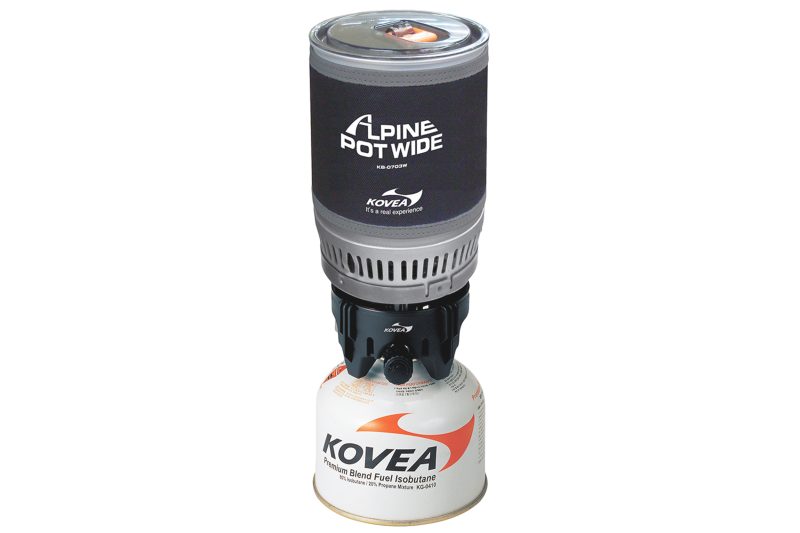The wide 1100ml pot of this integrated stove provides a little more cooking versatility than narrower pot designs while still being safe and easy to use in exposed or confined places. While not as powerful as the Flash, it has many similar features such as a neoprene pot cosy, a heat exchanger and an included plastic cup. It also has a folding handle, a control knob and a mesh storage bag.