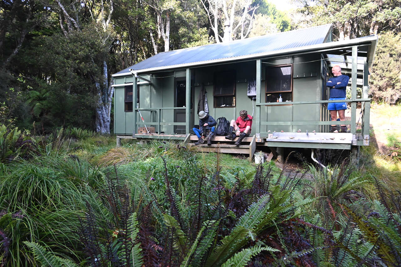The first two days were the longest – seven hours each. We were on the beach before sunrise to catch the low tide around a rocky headland. Sand turned to boulders, then the first climb over Te Upoko-o-Taepu Mason Head, the track marked by fishing buoys. At Little Hellfire Beach we sunned ourselves at the new hunters hut, which bore scant resemblance to the lashed driftwood and NZ Railways tarp structure of old. Then it was no stairway to heaven, rather a quagmire to the bigger Hellfire Beach.